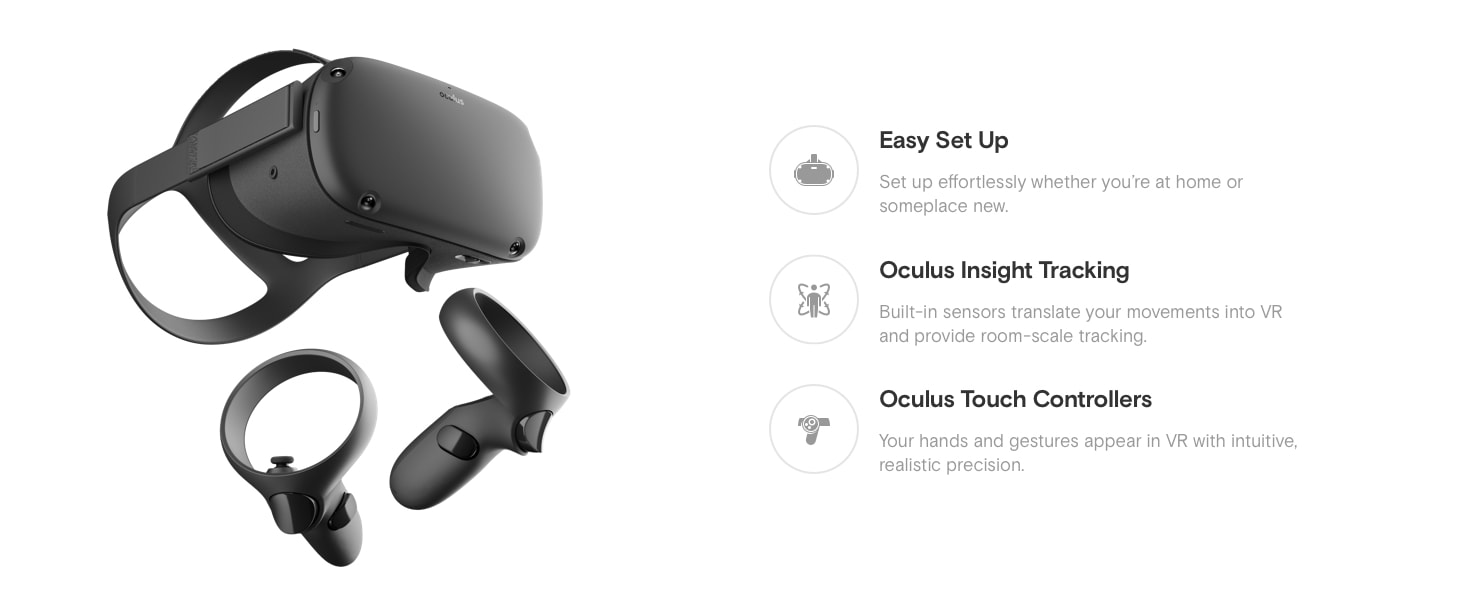 - Easy set up: The world is your arcade. Set up is easy whether you're at home or someplace new. Oculus Quest works with your environment, so you can play standing or sitting in spaces big or small.