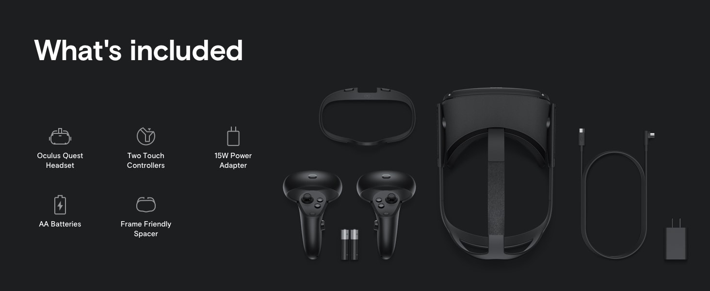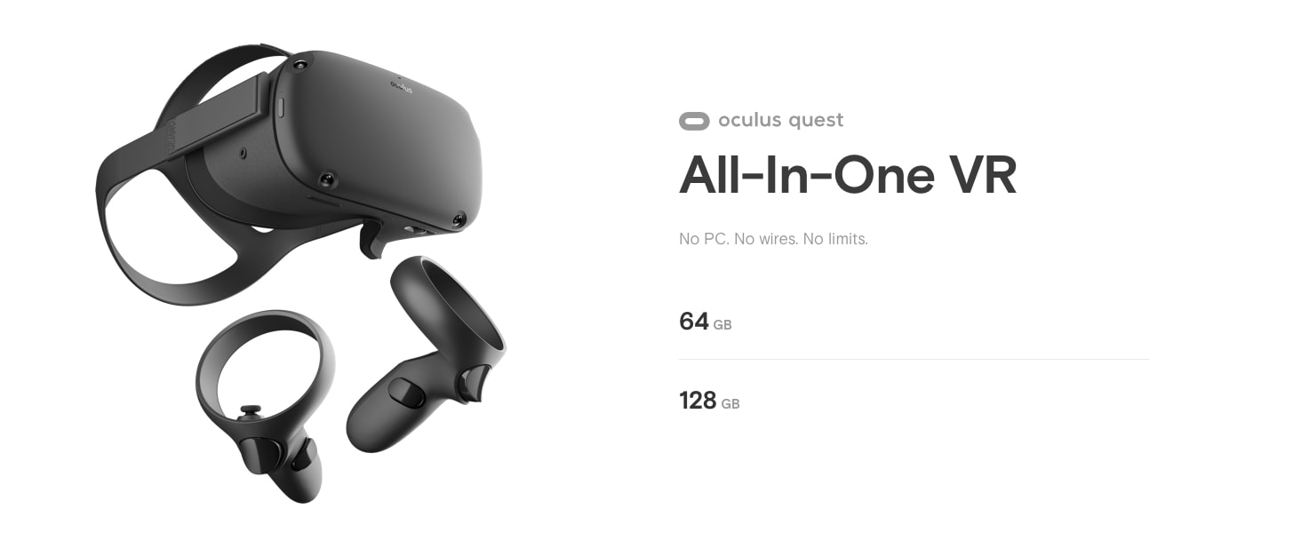 - All-in-one VR: No PC. No wires. No limits. Oculus Quest is an all-in-one gaming system built for virtual reality. Now you can play almost anywhere with just a VR headset and controllers.