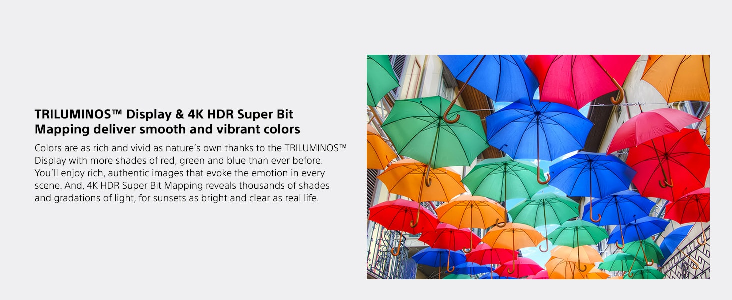- ULTIMATE REALISM: Enjoy clear, vibrant colors with TRILUMINOS Display and 4K HDR Super Bit Mapping